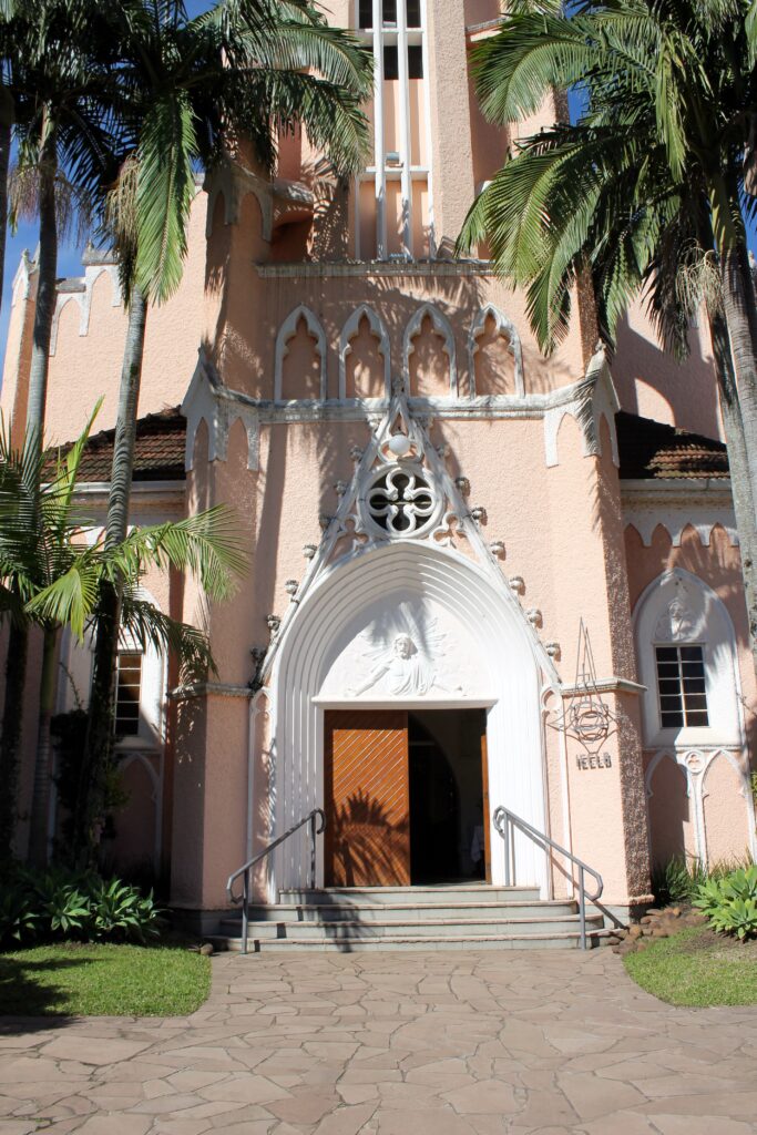 Em 1935 a igreja foi demolida e, no mesmo local, foi construído um novo prédio, como conhecemos hoje, inaugurado em 08 de setembro de 1935. Desenvolvida pelo arquiteto Siegfried Bertholdo Costa, a planta da Igreja Evangélica da Paz foi desenhada em estilo neogótico, lembrando as igrejas medievais europeias que, segundo sua tradição, procuravam estar mais próximos de Deus através de sua torre mais alta. O relógio foi instalado em 1944.