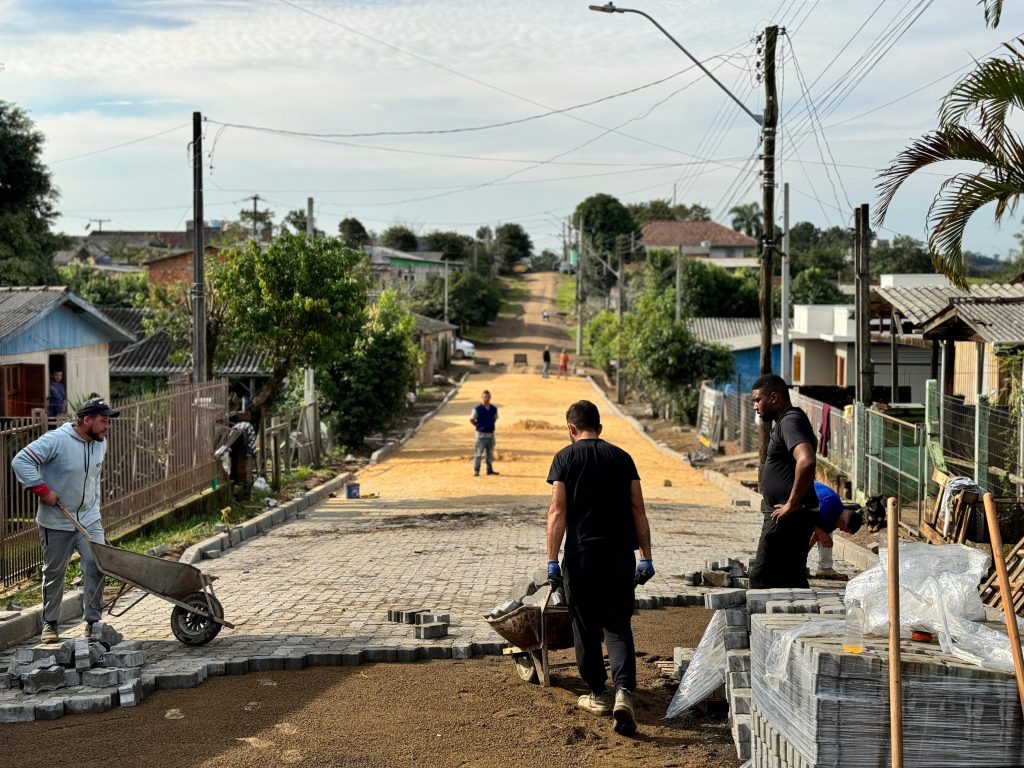 Rua Francisco Alves, em Taquara, recebe pavimentação com blocos de concreto