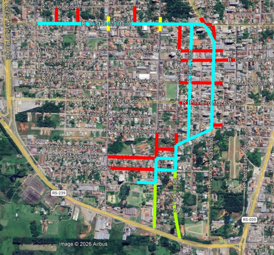 Não será possível atravessar o Centro durante o horário do evento, sendo necessário utilizar rotas alternativas, como a ERS-239 ou vias localizadas acima da Rua Tristão Monteiro, como a rua Carlos Kraeff que estará liberada para o tráfego de veículos para atravessar a região central do município.