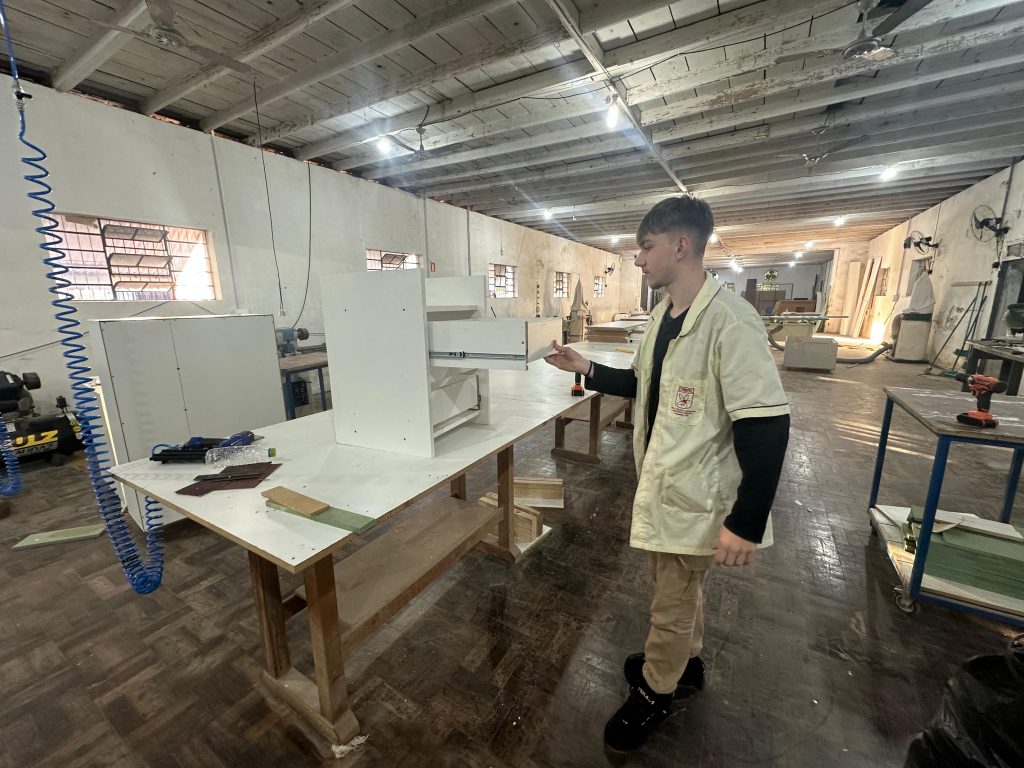 “A estrutura das camas metálicas, por exemplo, foi feita pelo curso de mecânica. O pessoal da mecânica criou as estruturas, e o curso de móveis fez os acabamentos. Essas camas foram doadas aos Bombeiros Voluntários de Igrejinha, e o recurso para produzi-las veio de um brechó solidário feito por voluntários em Igrejinha, que arrecadou cerca de R$ 5 mil. Se fosse para comprar camas prontas com esse valor, não daria. Mas com o que arrecadamos, conseguimos montar camas resistentes, todas metálicas, que permanecem mesmo em caso de nova enchente”, relata Kelly.
