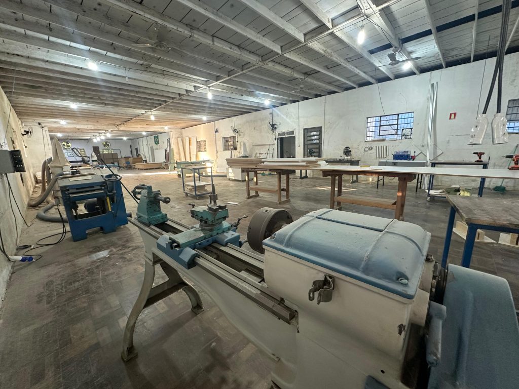 Para viabilizar a produção dos móveis, foram adquiridos maquinários e insumos como: