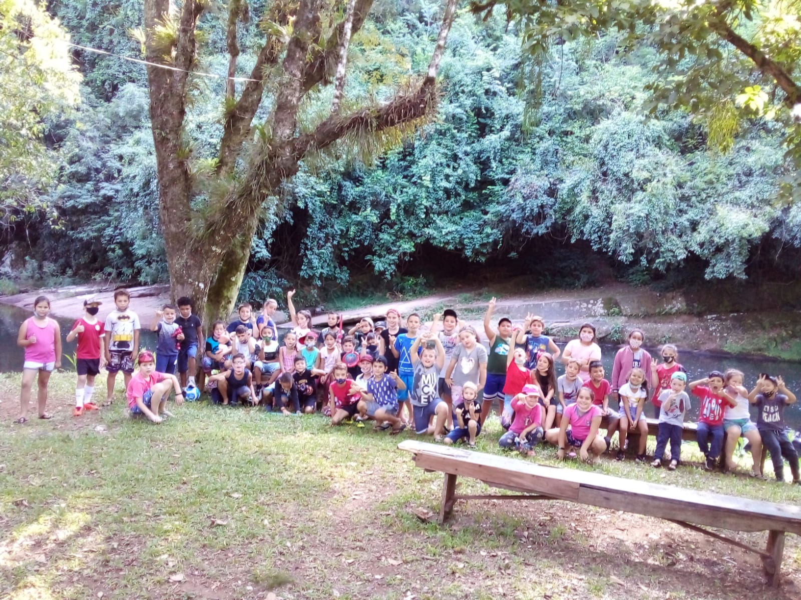 Os alunos foram ao Balneário Pola, onde participaram de brincadeiras, com períodos para lanche e descanso, bem como receberam almoço no local.