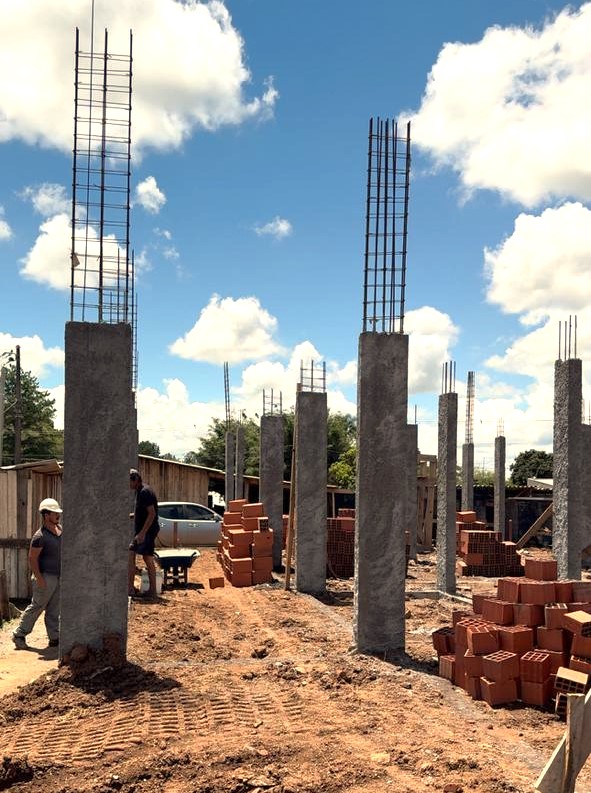 As obras de construção da nova Escola de Educação Infantil na Vila Feliz, em Parobé, seguem sendo realizadas. No momento, as equipes da empresa vencedora da licitação estão atuando na parte da fundação e na montagem e concretagem dos pilares, dobragem e montagem das ferragens das vigas.