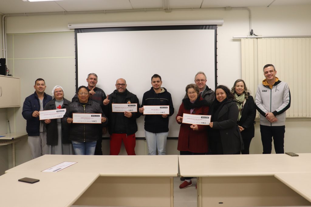 A entrega dos donativos ocorreu na tarde de sexta-feira (05), no campus da Faccat, e contou com a participação de uma entidade de cada um dos seis municípios do Paranhana, e também com as presenças da gerente do Sesc/Taquara, Fabiane Luiz Oliveira, e do secretário de Orçamento e Finanças de Taquara, Douglas Márcio Kaiser.
