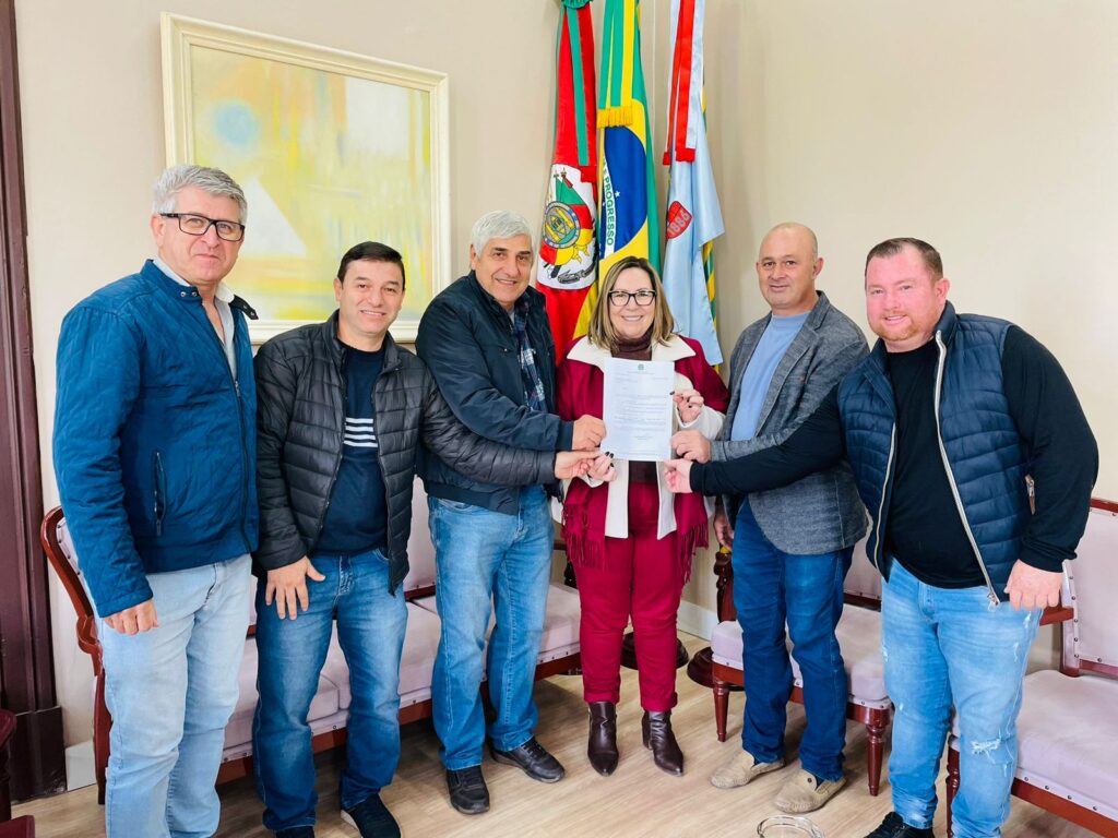 Nesta segunda-feira (12), a prefeita de Taquara, Sirlei Silveira, recebeu em seu gabinete a visita dos vereadores Everton Rosa, Guido Mário Prass Filho e Adelar Marques, que oficializaram a entrega de mais uma emenda destinada pelo senador Luis Carlos Heinze, totalizando o valor de R$ 404 mil.