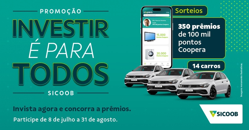Mais de 8 milhões de cooperados do Sicoob terão a chance de realizar grandes conquistas com a 4ª Edição da promoção “Investir é para Todos 2024”. A partir de 8 de julho, quem investir em produtos de renda fixa, RDC (Recibo de Depósito Cooperativo), LCA (Letras de Crédito do Agronegócio), LCI (Letra de Crédito Imobiliário) e LF (Letra Financeira) concorrerá a 14 carros zero quilômetro e prêmios em pontos Coopera – o programa de fidelidade e shopping virtual da instituição financeira cooperativa. A promoção segue até o dia 31 de agosto.