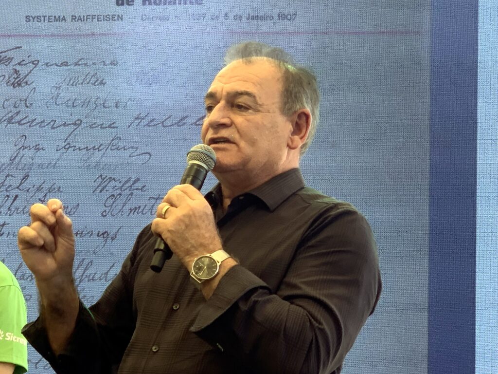 “A primeira tecnologia da cooperativa eram dois livros, um grande que ficava na cooperativa e uma caderneta que o associado levava embora. Hoje, existe uma tecnologia na agência e um celular, que nossos associados, de diversas regiões do Estado, podem utilizar os nossos serviços. Nestes 100 anos, a transformação foi acontecendo e o nosso grande desafio foi, e segue sendo, o de ficarmos atentos as mudanças e acompanhar toda a transformação que vem ocorrendo no mundo”, analisa o presidente da Sicredi Caminho das Águas.