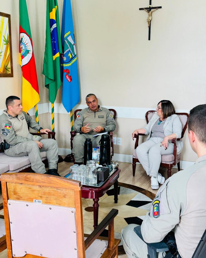 A prefeita Sirlei Silveira recebeu nesta segunda feira uma visita de representantes da Brigada Militar e aproveitou para solicitar mais policiamento na cidade, em especial no entorno do Parque do Trabalhador. Segundo nota publicada em rede social, a mandatária municipal recebeu no gabinete o comandante do Comando Regional de Policiamento Ostensivo (CRPO) Hortênsias da Brigada Militar, coronel Ivens Giuliano Campos dos Santos. Junto com ele, também estavam o comandante da 2ª Cia Independente da Brigada Militar, major Gabriel Enzweiler Damásio, e o comandante da BM de Taquara, Patrick Zambelli.