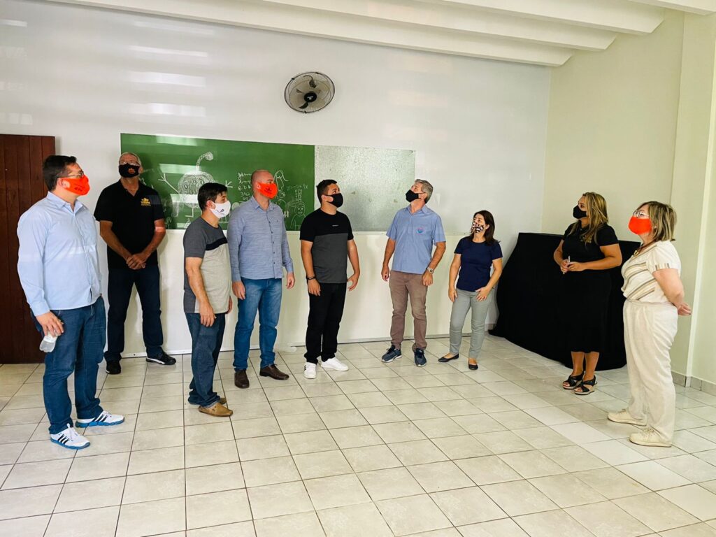 Os secretários de Planejamento, Meio Ambiente e Captação de Recursos, Luciano Campana, de Orçamento e Finanças, Jefferson Müller, e os vereadores Adalberto Soares, Beto Lemos, Júnior Eltz e Jorginho Almeida acompanharam a visita ao prédio.