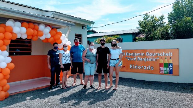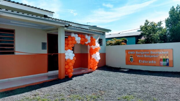 Benjamin Bourscheit “Vovô Benjamin” é a nova Escola Municipal de Educação Infantil inaugurada, na manhã desta terça-feira (29), no bairro Eldorado (rua Reinoldo Jaeger, 2684 ). A estimativa é que, assim que retomem as aulas na rede de ensino municipal, a escolinha possa atender cerca de 30 crianças.