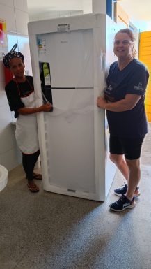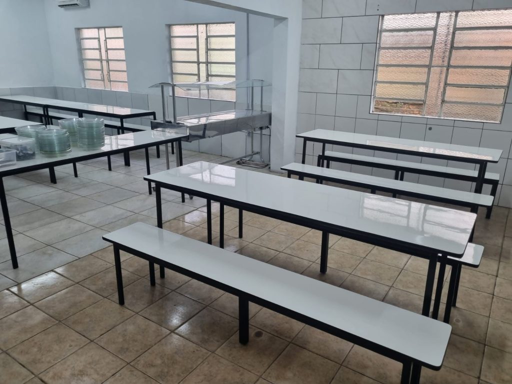 Entre os itens adquiridos estão mesas de refeitório, cozinhas sob medida, armários, pracinhas, geladeiras, freezers, aparelhos de ar-condicionado e máquinas de lavar roupas. Conforme informado, os materiais substituem equipamentos antigos, contribuindo para modernizar a estrutura das escolas.