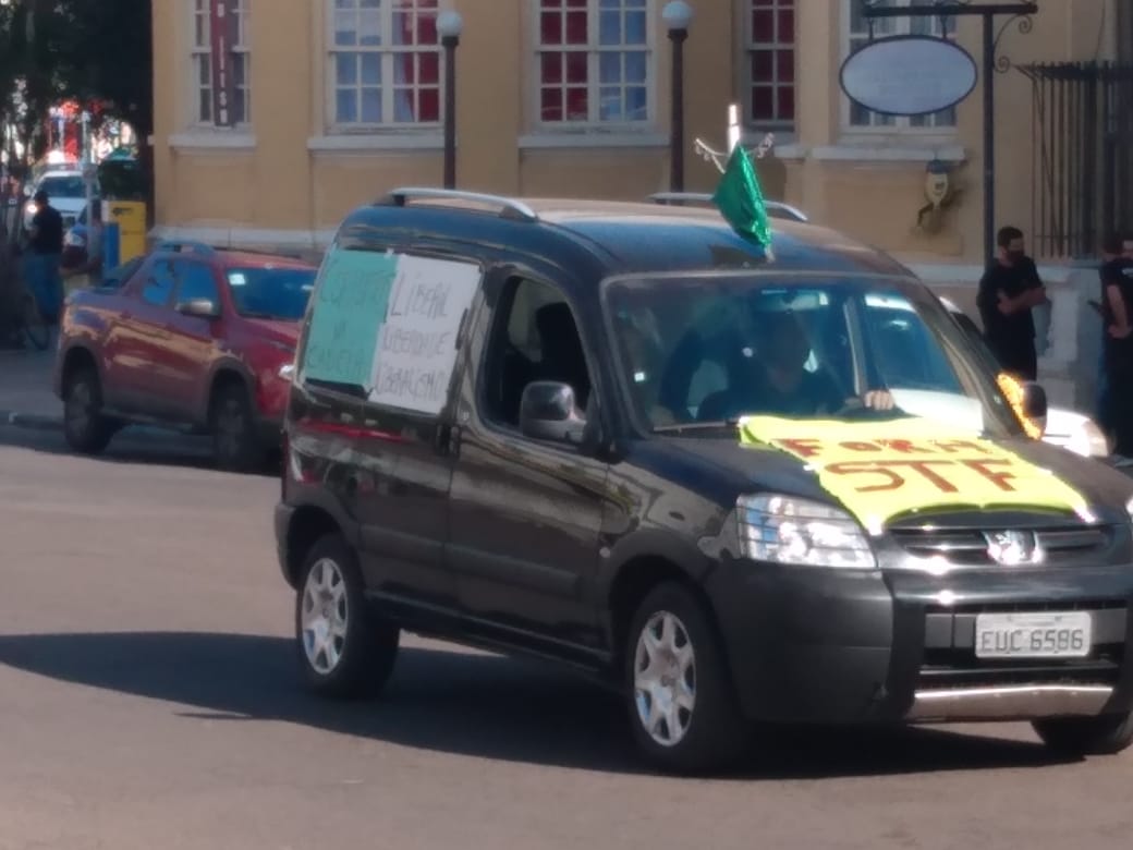 Na Praça Marechal Deodoro, um grupo de apoiadores do movimento, com bandeiras do Brasil, aguardava a passagem da carreata, que contou com um significativo número de veículos. Nos carros, havia faixas em apoio ao presidente Jair Bolsonaro e muitas bandeiras do Brasil. Além disso, houve veículos com cartazes contra o Supremo Tribunal Federal (STF). Uma das faixas, em um caminhão, dizia: “Não é a direita contra a esquerda, é a nação contra a corrupção”.