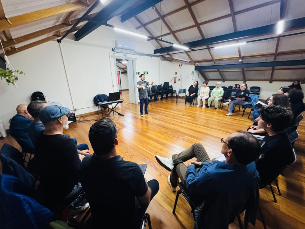 Coral Municipal Maestro Newton Macedo realizando o ensaio de preparação para o evento (Magda Rabie/Prefeitura de Taquara)