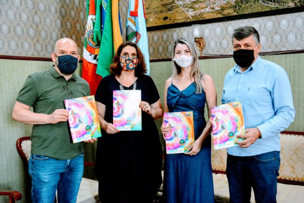 A sexta edição da revista “Saberes na Educação Infantil Municipal de Taquara” foi apresentada nesta terça-feira, 29, ao prefeito Tito Lívio Jaeger Filho, pelo secretário de Educação, Cultura e Esportes, João Carlos de Moura, pela coordenadora Talita Morbach e pela supervisora, Marelise Prass Cardoso, durante encontro no gabinete do Executivo.