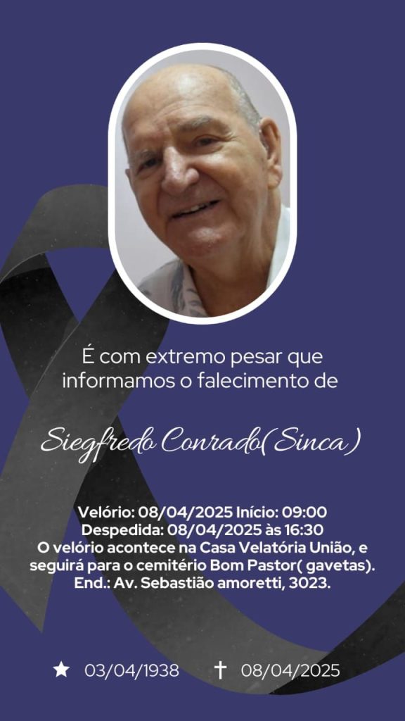 Será sepultado agora a tarde Siegfredo Coonrado, popularmente conhecido como Sinca, em Taquara. Na vida profissional foi motorista de caminhão, atividade pela qual conheceu o Brasil inteiro viajando.