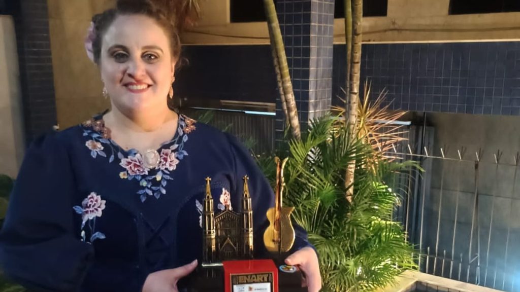 A taquarense Clara Lisiane Faccio destacou-se no Encontro de Artes e Tradição Gaúcha (Enart) 2024, realizado em Santa Cruz do Sul, ao conquistar o 3º lugar na categoria Declamação Feminina no último domingo (17). O evento, que é considerado um dos maiores festivais de arte amadora da América Latina, reuniu competidores de diversas regiões do Rio Grande do Sul em uma celebração da cultura e das tradições gaúchas.