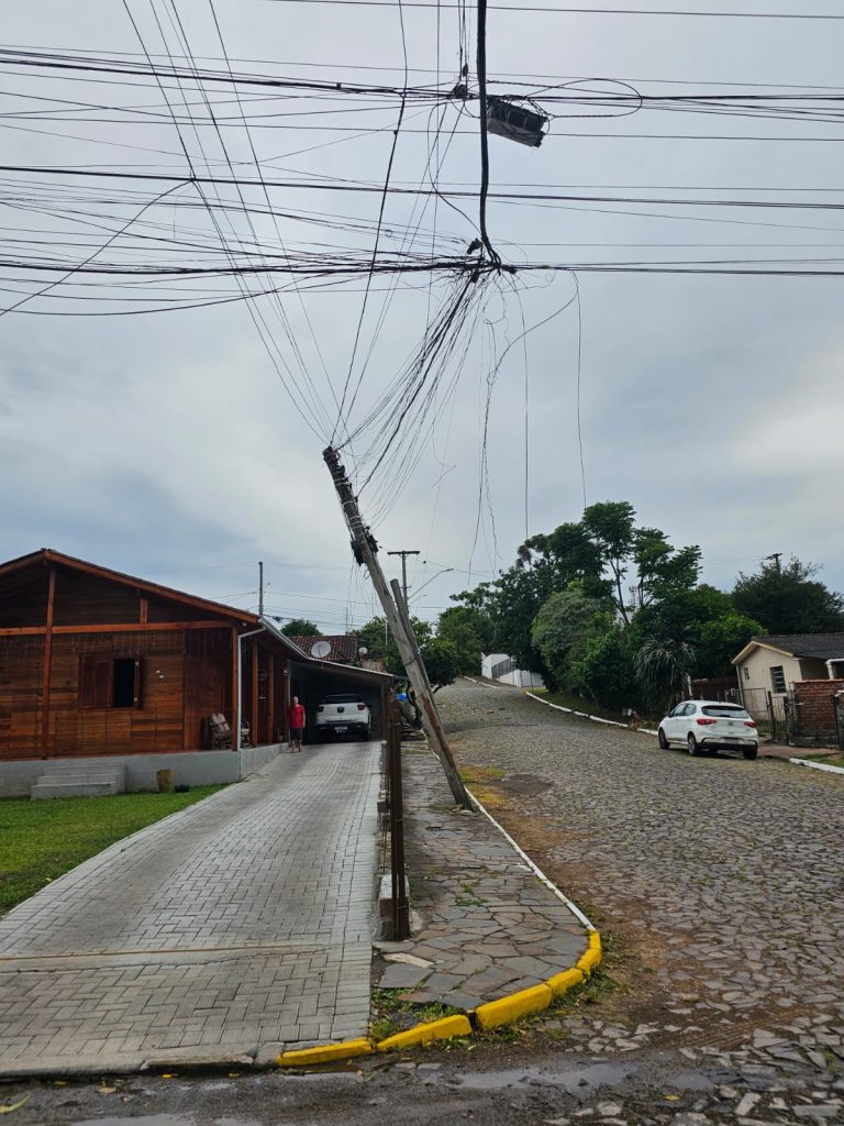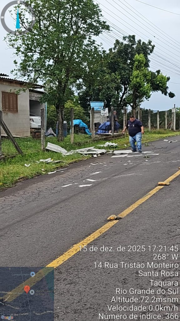 Um forte temporal acompanhado de intensas rajadas de vento causou diversos estragos em Taquara na tarde desta segunda-feira (15). O evento climático resultou em destelhamentos, quedas de árvores e de postes de energia e telecomunicação em diferentes pontos do município, exigindo resposta de equipes da Defesa Civil, Corpo de Bombeiros Militar (CBM), Secretaria de Obras, Diretoria de Trânsito, setor de Iluminação Pública e voluntários.