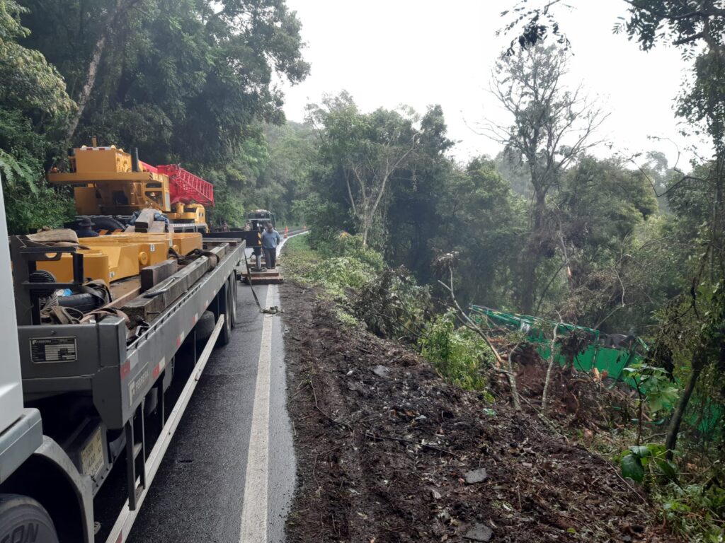 Foi liberado, por volta de 16h50min desta quinta-feira (22), o trânsito no Km 73 da ERS-020, na localidade de Rodeio Bonito, em Três Coroas. A nova paralisação do tráfego de veículos, iniciada por volta de 10h, foi necessária para a utilização de um guindaste, que foi usado na retirada de um caminhão bitrem, que caiu na ribanceira, às margens da rodovia, no último dia 14.