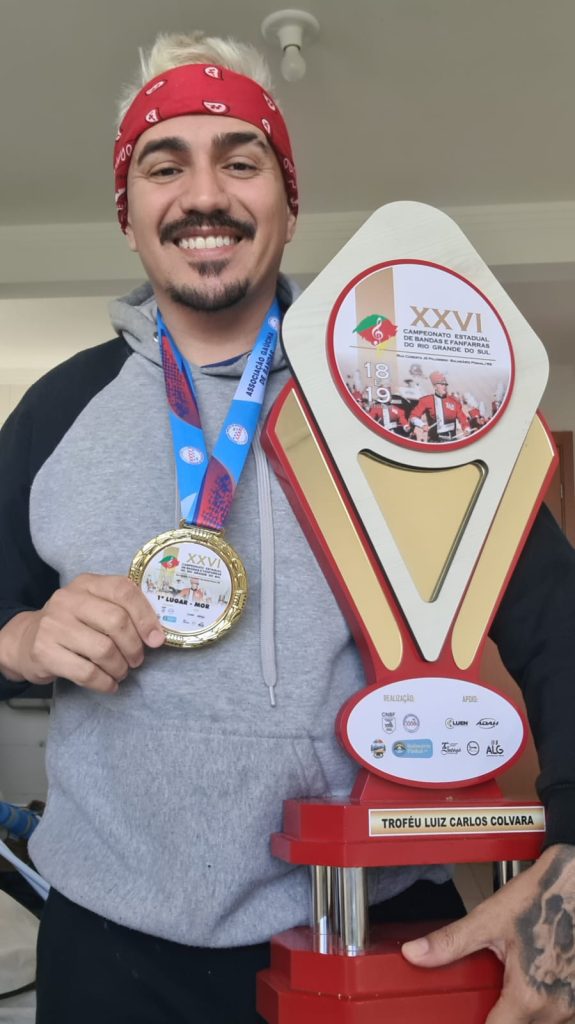 O jovem, estudante de educação física, é musicista com raízes em Três Coroas. Ele já atuou na banda local, mas hoje desempenha a função de Mor de Comando da Banda Áquila, de Viamão. O grupo também teve destaque durante a competição, conquistando o 2º lugar na categoria Banda Melódica Sênior.