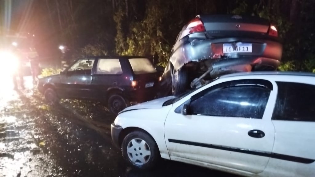 Ao passar pelo Km 26, a motorista acabou colidindo o carro contra uma árvore. Na sequência, o Uno foi atingido por um GM/Prisma, com placas de Gramado, e conduzido por um homem, de 46 anos, e com uma passageira, de 26 anos. O Prisma também foi atingido pelo GM/Celta, com placas de Três Coroas, e conduzido por um homem, de 34 anos.