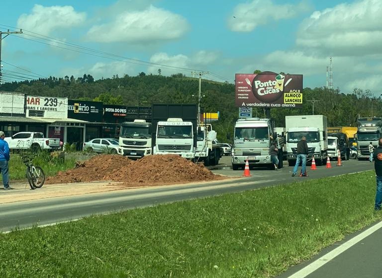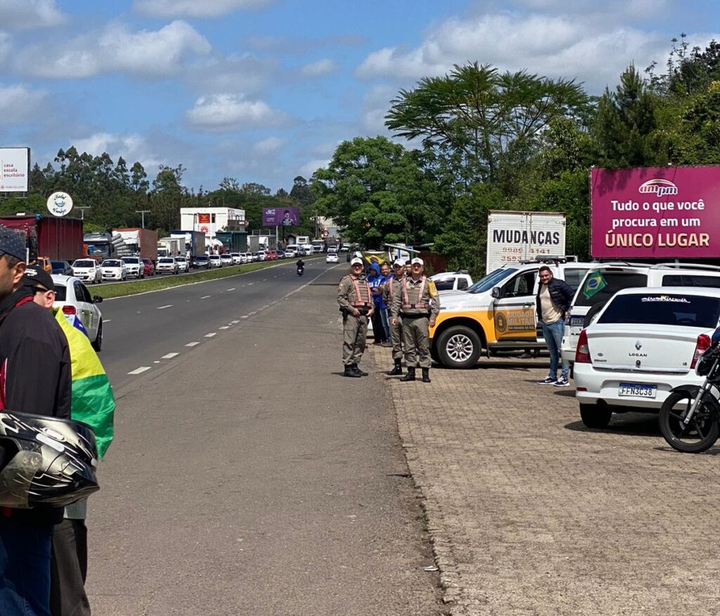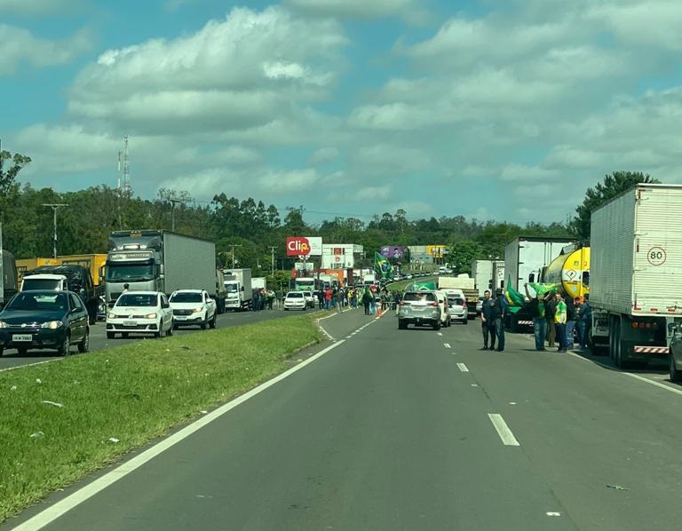 Segundo do Comando Rodoviário da Brigada Militar (CRBM), por volta de 11h20min, o batalhão de choque permanecida no local, em negociação para liberação dos veículos leves, de emergência e de transporte de produtos perecíveis.