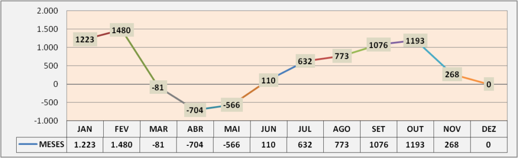 A evolução mensal do mercado de trabalho mostra o impacto da pandemia. Janeiro e fevereiro começaram com crescimento significativo na criação de empregos formais, mas, depois, nos meses de março, abril e maio despencaram as vagas na região. Nestes três meses, houve um recrudescimento da pandemia, inclusive com o novas restrições às atividades. A partir de junho, a economia começou a recuperação, com aceleração do ritmo a partir de julho. No mês passado, entretanto, houve uma queda na evolução da geração de empregos. Abaixo, o gráfico com a evolução mensal da criação de empregos na região.