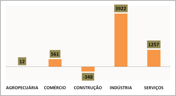 No recorte por setor da economia, durante o ano de 2021, a indústria segue responsável pela criação da maior parte dos empregos da região. Depois, aparece o setor de serviços, o comércio e a agropecuária. A construção civil está com saldo negativo no Paranhana (veja tabela abaixo).