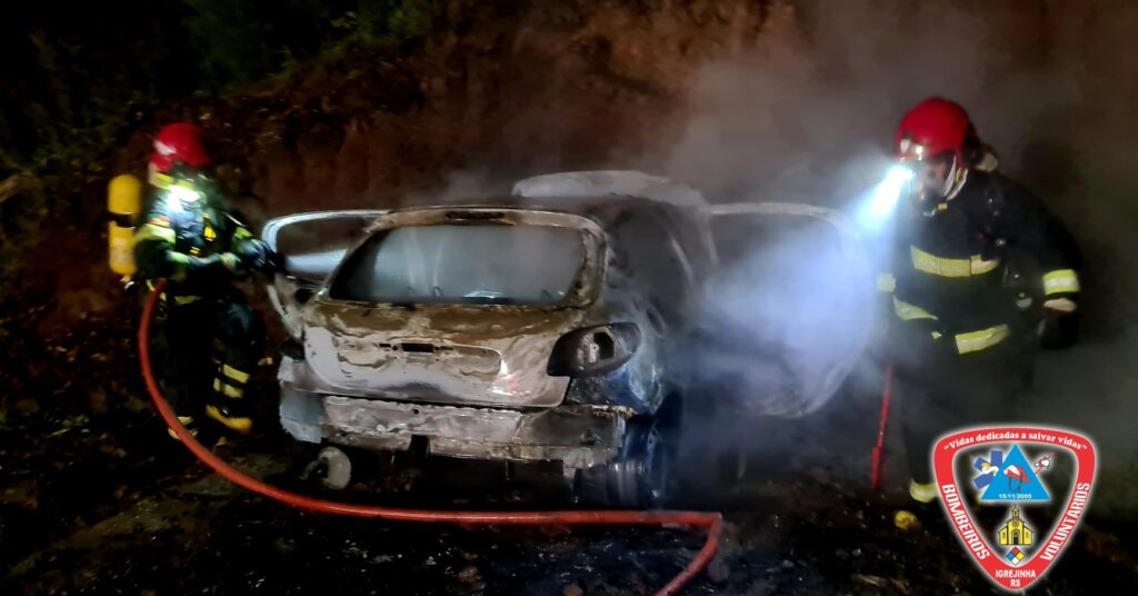 Na noite de terça-feira (11), um veículo foi consumido pelo fogo, no interior de Igrejinha. Por volta de 19h50min, o Corpo de Bombeiros Voluntários de Igrejinha foi acionado até a Estrada Geral Serra Grande, próximo da Santinha.