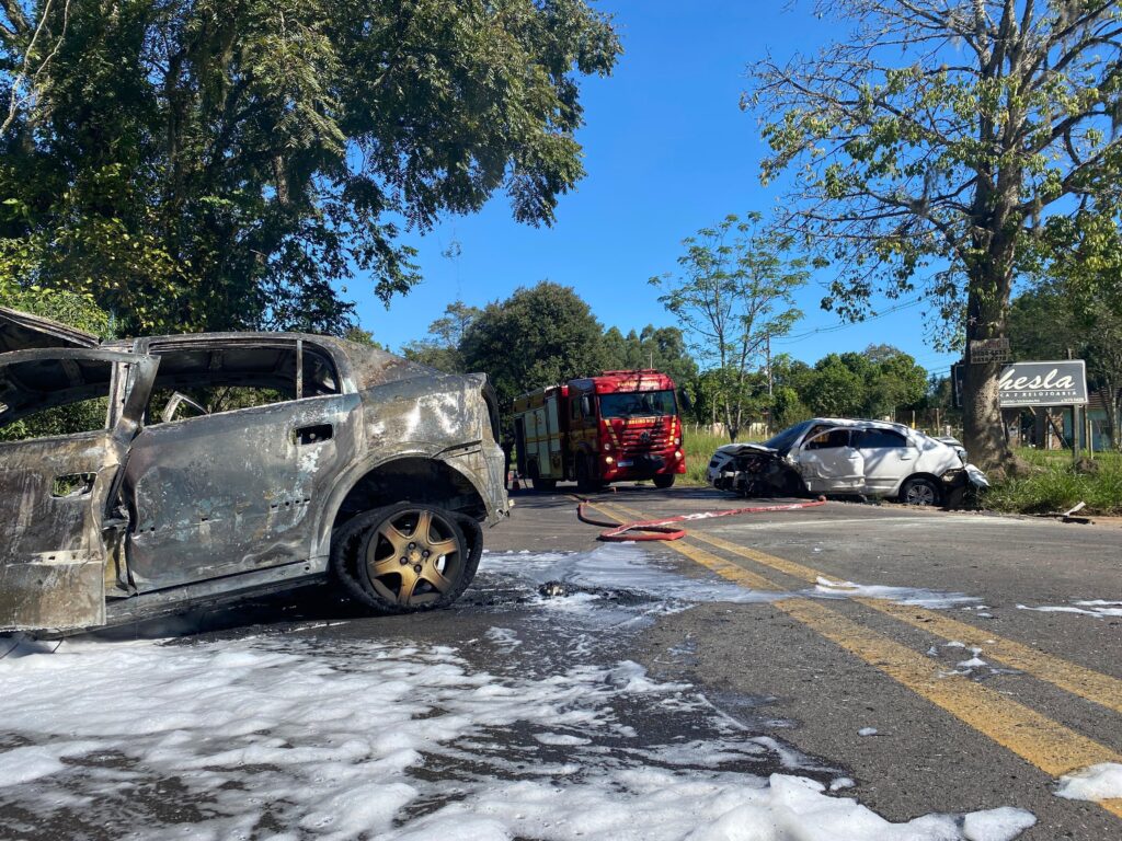 Na tarde deste sábado (20), após uma colisão frontal na ERS-020, em Taquara, um dos veículos envolvidos acabou incendiando. O acidente ocorreu por volta de 13h40min, no Km 52 da rodovia, na localidade de Km 4, no sentido São Francisco de Paula a Taquara, e envolvendo os automóveis GM/Astra, com placas de Taquara, e GM/Cobalt, com placas de São Francisco de Paula.