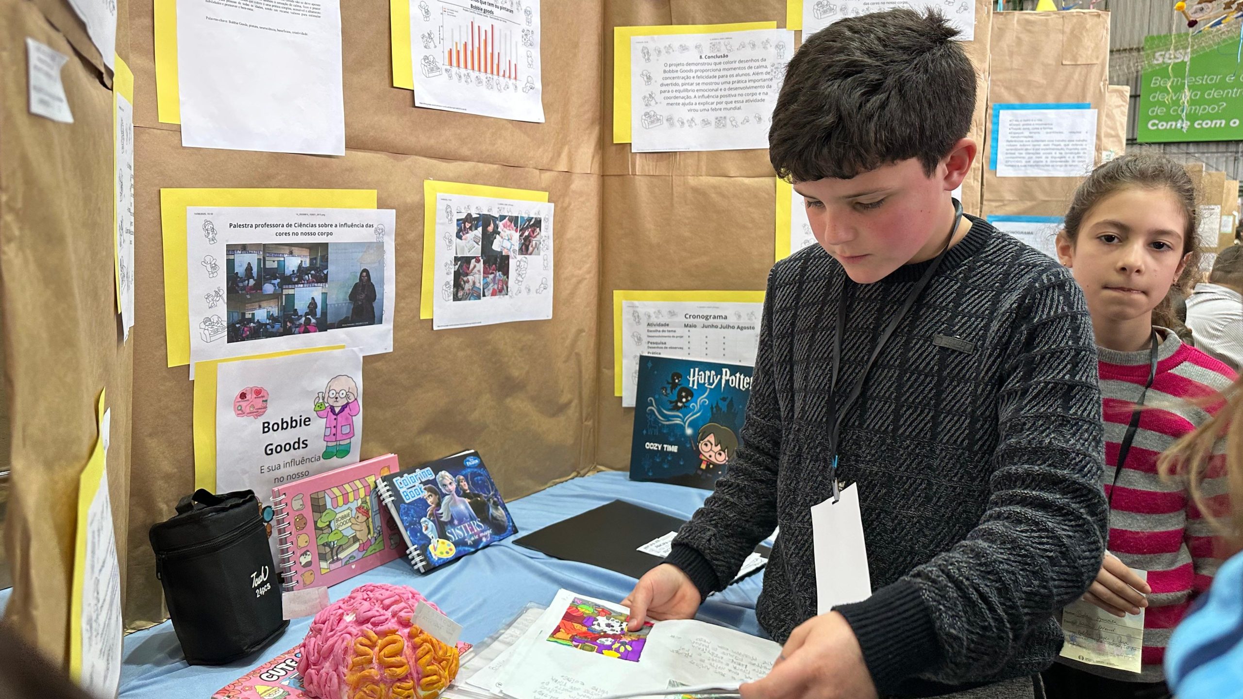 De acordo com Cecília Riffel, também de 7 anos, o trabalho resultou em um “monte” de conhecimento. “O cérebro é tipo um chefe que comanda todo o nosso corpo“, explica.