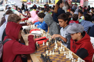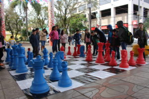 A Rua Coberta da Praça 1º de Maio, de Parobé, recebeu, na tarde desta quarta-feira (26), uma ação diferenciada: mais de 240 alunos enxadristas de 17 escolas municipais participaram do projeto Xadrez na Praça, promovido pela Secretaria Municipal de Educação, Cultura, Turismo, Esporte e Lazer. A atividade foi organizada pelo coordenador de xadrez do município, o professor Antônio Carlos Duarte de Souza. Os estudantes tiveram disputas individual e equipes, com o uso do tabuleiro gigante. Autoridades municipais, professores e equipes diretivas das escolas também prestigiaram a atividade.